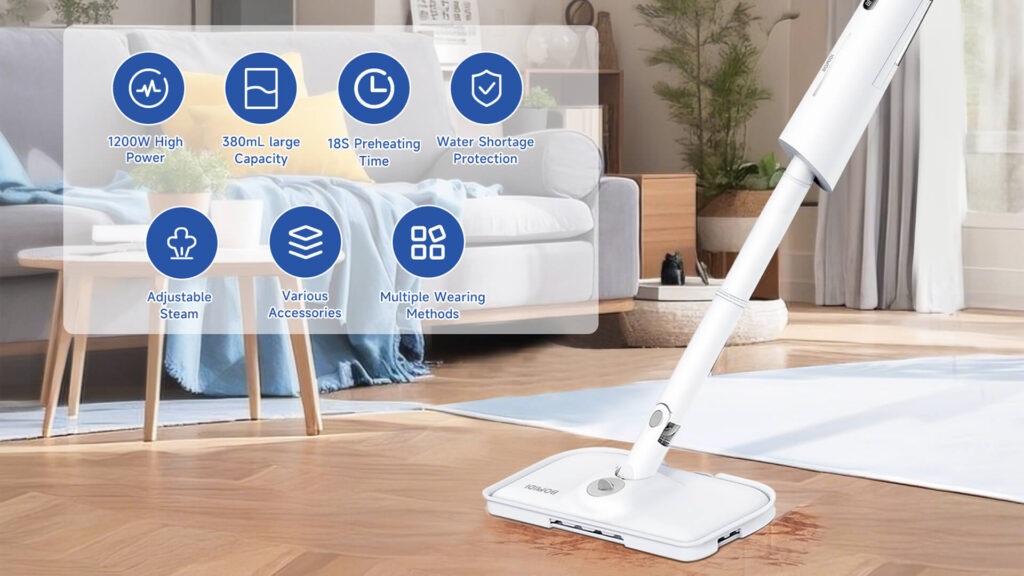 The BOMIDI SM01 doesn’t just clean floors—it can also be used for multiple cleaning applications with the right attachments, such as refreshing carpets or sanitizing tiles and grout. Its quick-drying performance helps prevent water spots and streaks, leaving floors spotless and safe to walk on almost immediately.